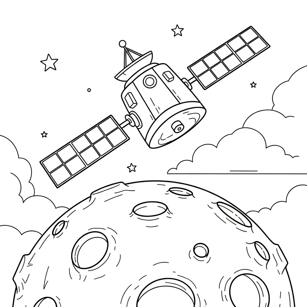 Lade diese einfache Malvorlage eines Satelliten über dem Mond herunter und drucke sie aus. Ideal für Kinder und macht Spaß beim Ausmalen zu Hause oder im Unterricht.