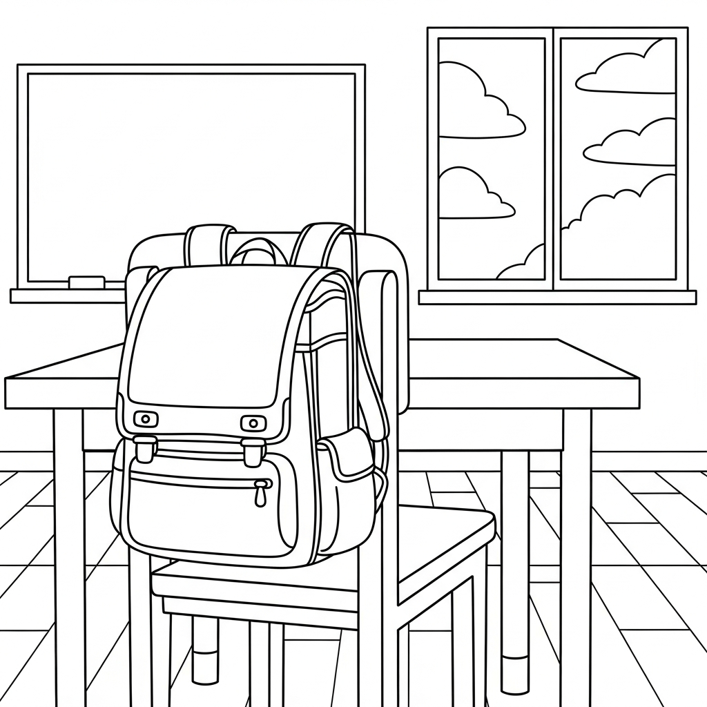 Easy Simple Student Backpack Hanging On Classroom Chair Coloring Page