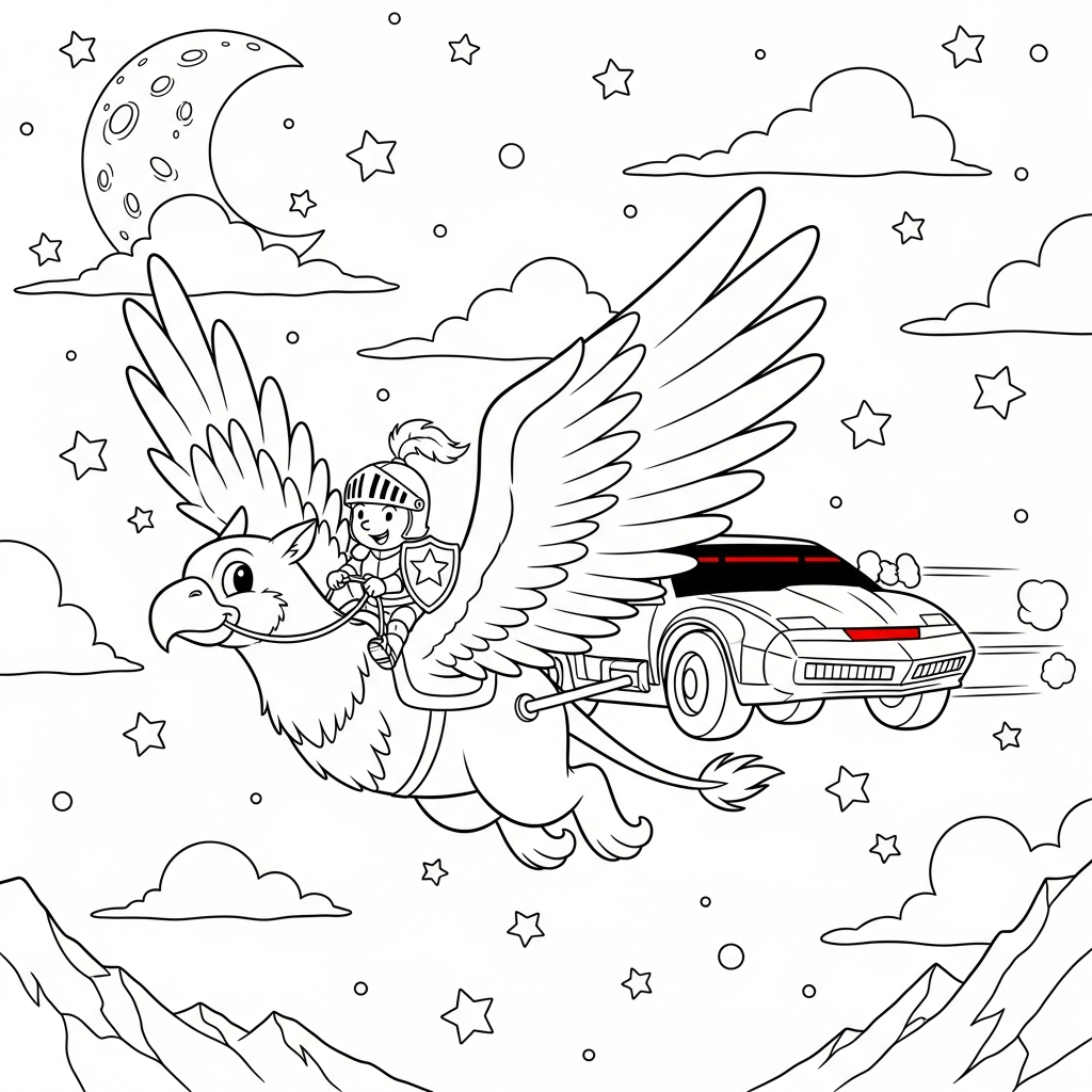 Medium Cartoon Griffin Coloring Page Featuring Knight Rider
