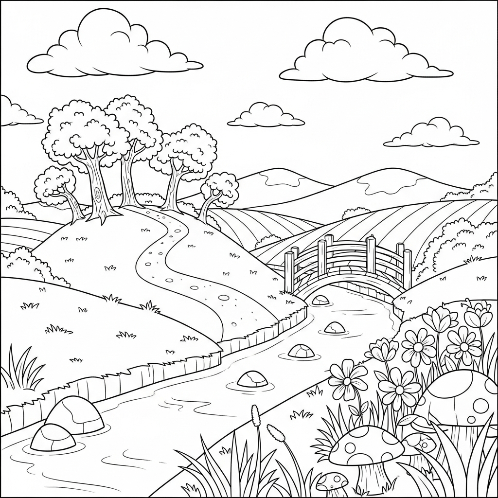 Enjoy nature coloring pages with flowers, trees, landscapes, and outdoor scenes.