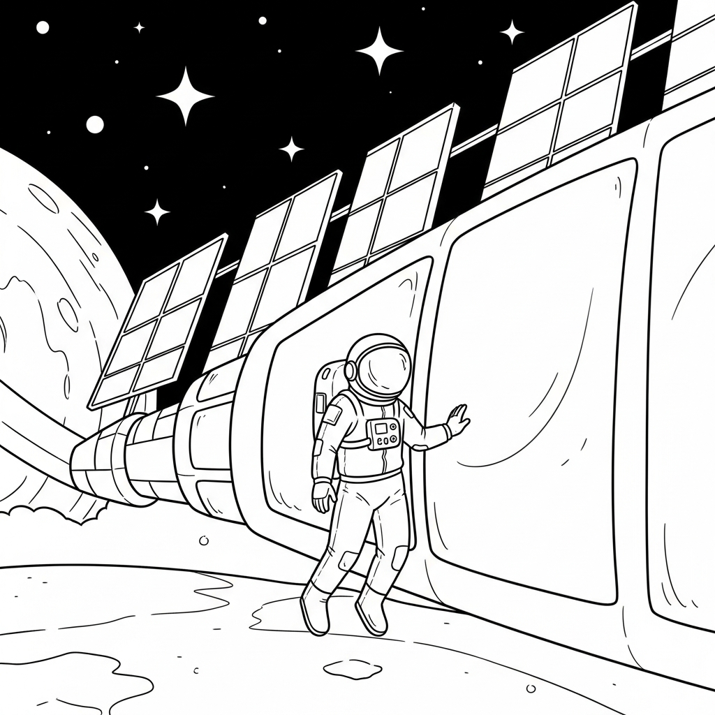 Download and print this fun space station adventure coloring page. Perfect for kids and an enjoyable coloring experience at home or in the classroom.