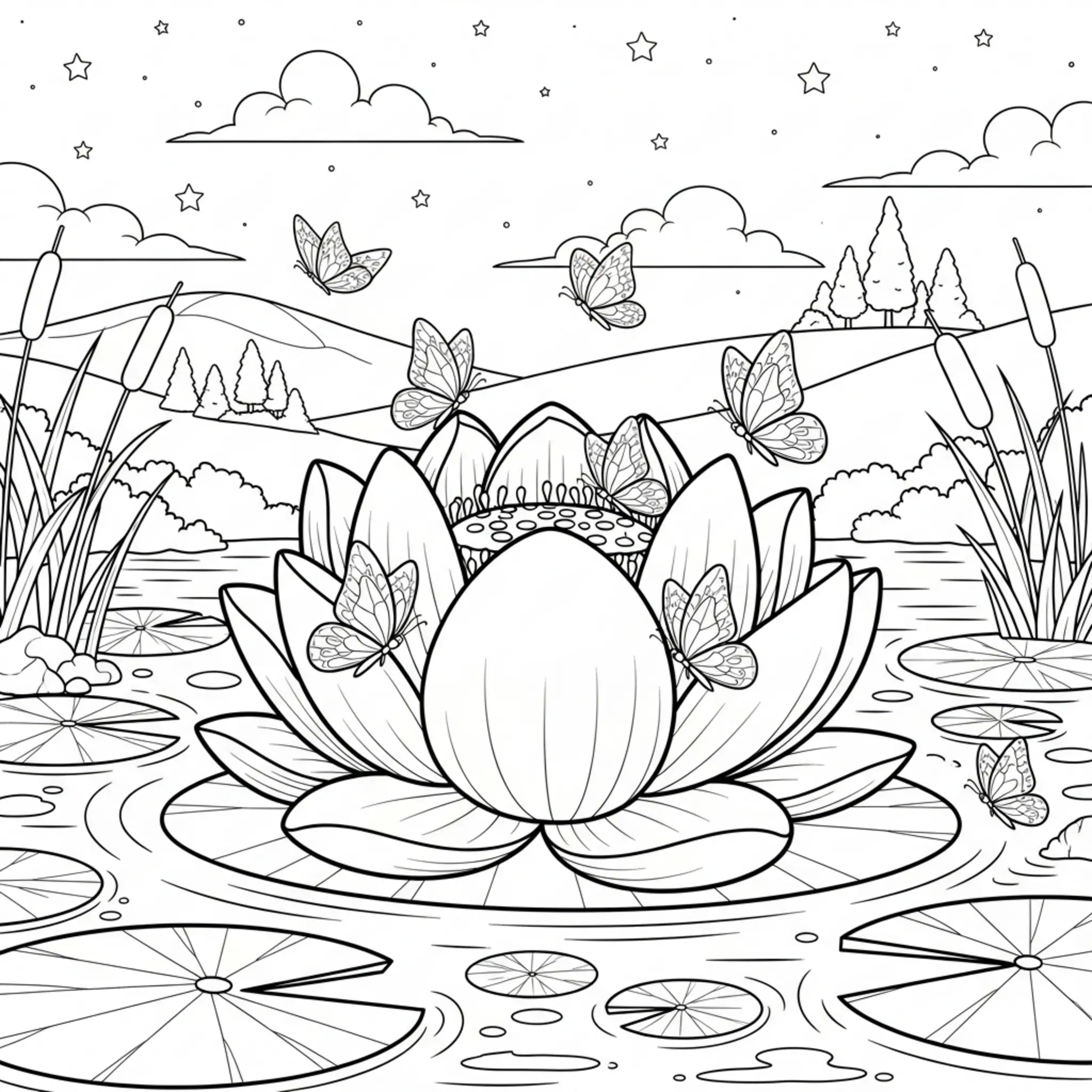 Téléchargez et imprimez cette page à colorier de lotus cartoon moyen accompagnée de papillons. Idéale pour les enfants, elle offre un moment de plaisir à colorier à la maison ou en classe.