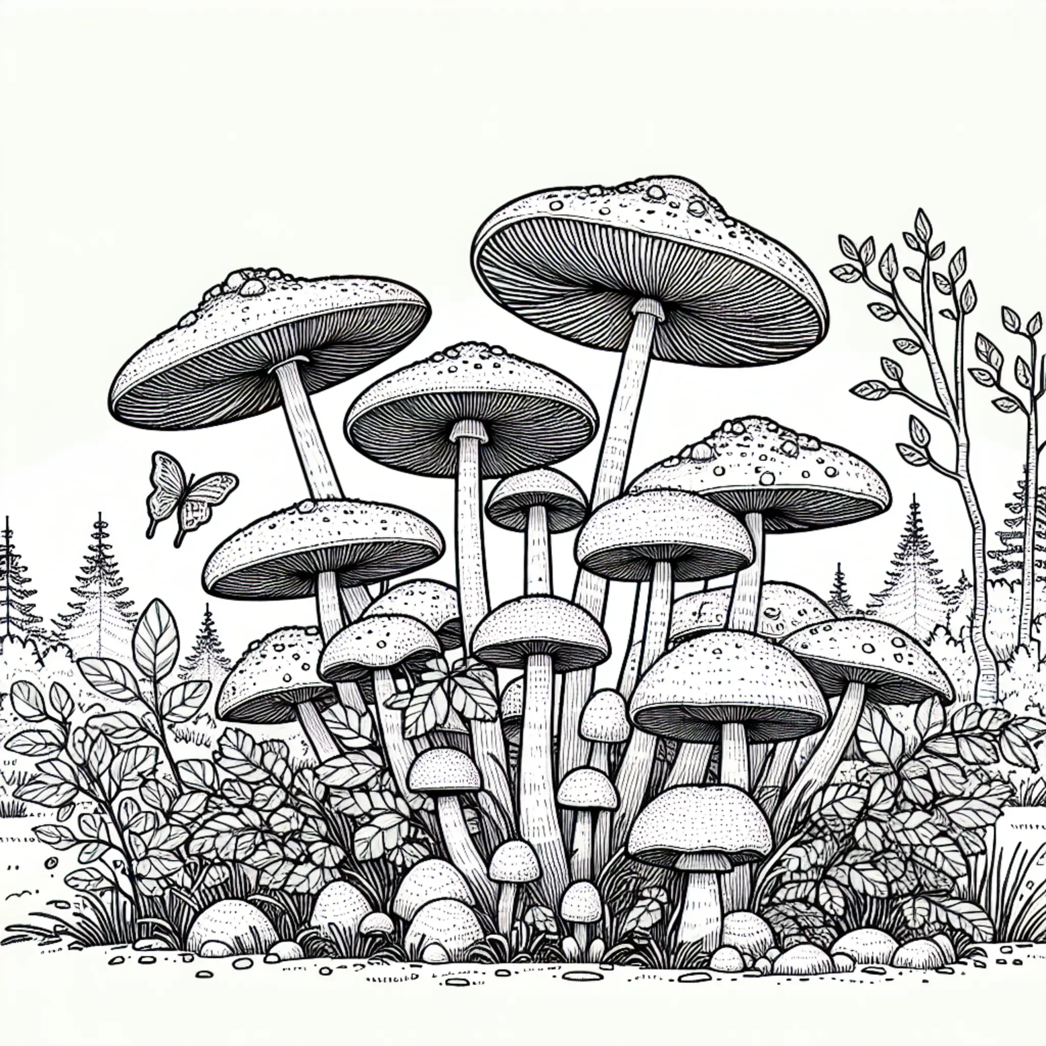 Download en print deze eenvoudige schimmelcluster in een schaduwrijke bosopen plek kleurplaat. Geweldig voor kinderen en leuk om thuis of in de klas te kleuren.