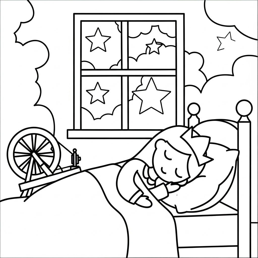 Eenvoudig Kleurplaat van de Slapende Prinses met Spintol