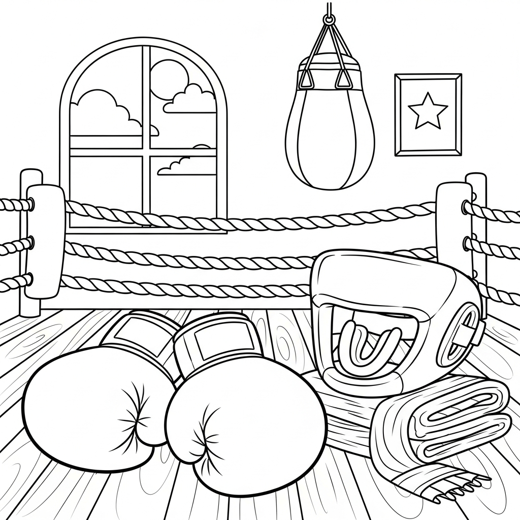 Página para Colorir Luvas de Boxe Cartoon Médias ao Lado de Protetor Bucal e Envoltórios