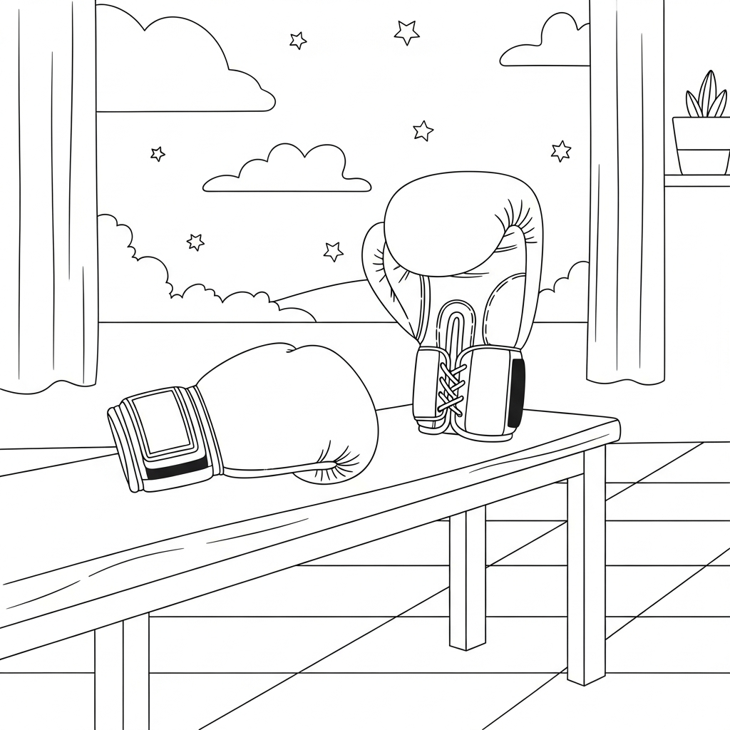 Página para Colorir Luvas de Boxe Fáceis em Banco de Treinamento