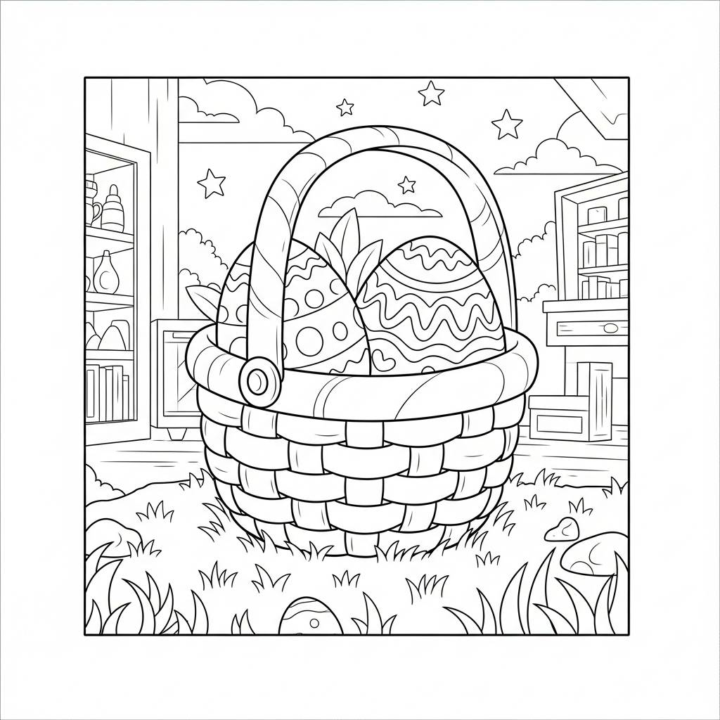Prepare-se para uma divertida atividade de colorir com nossa incrível cesta de Páscoa em um prado verdejante! Desenhe e pinte os detalhes da cesta e os ovos coloridos, criando sua própria obra de arte. Essa página para colorir é perfeita para as crianças e adultos que adoram celebrar esta festividade.