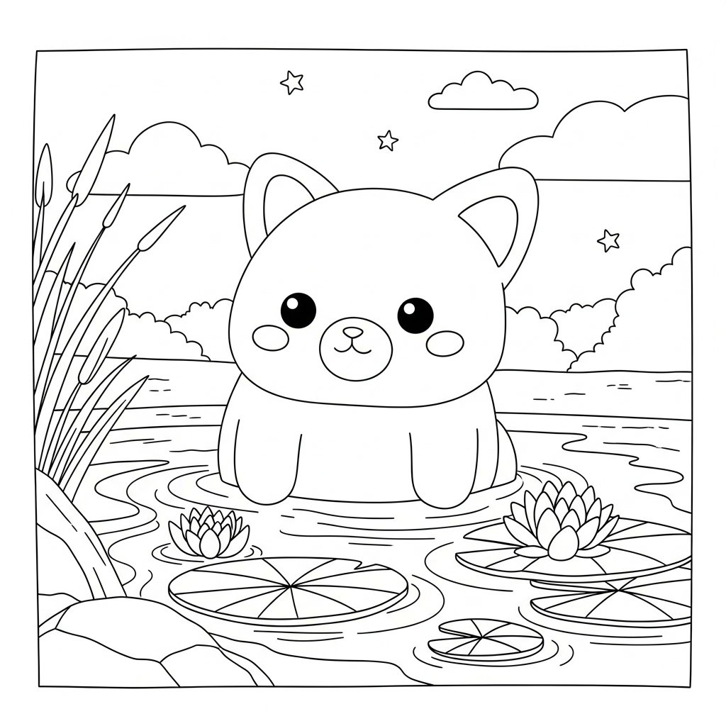 Baixe e imprima esta página para colorir lago simples com lírios. Perfeita para crianças e divertida para colorir em casa ou na escola.