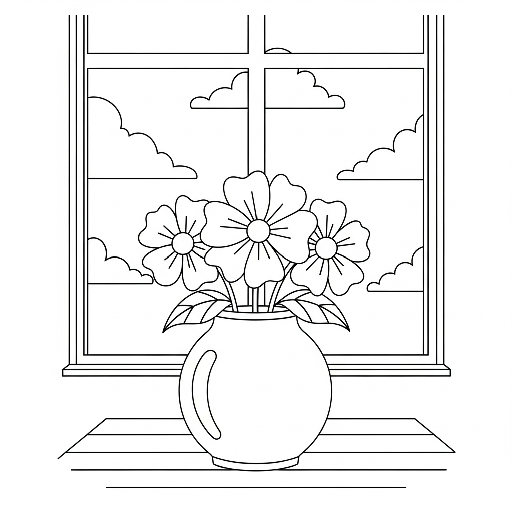 Página de Colorir: Vaso Simples com Flores do Jardim